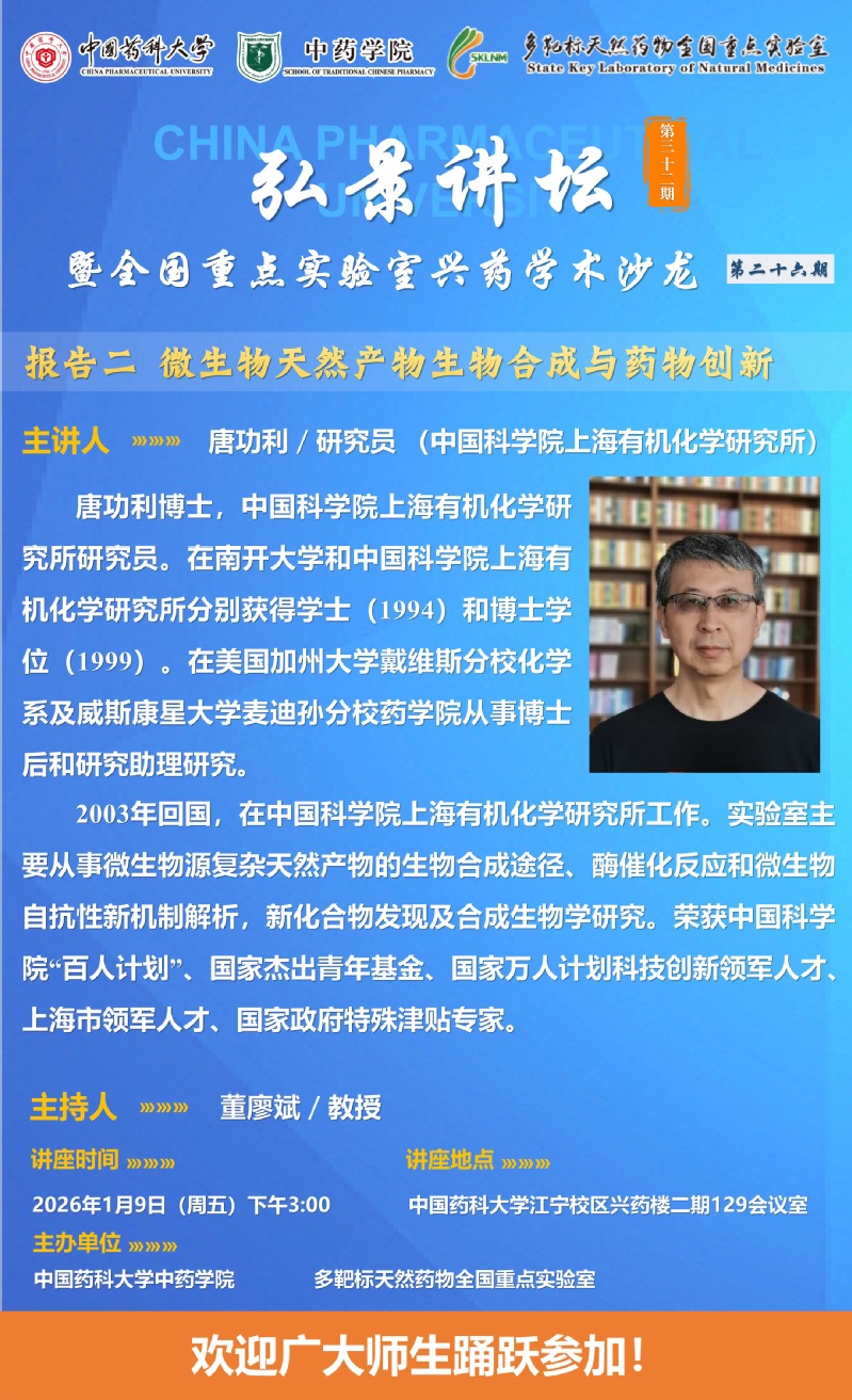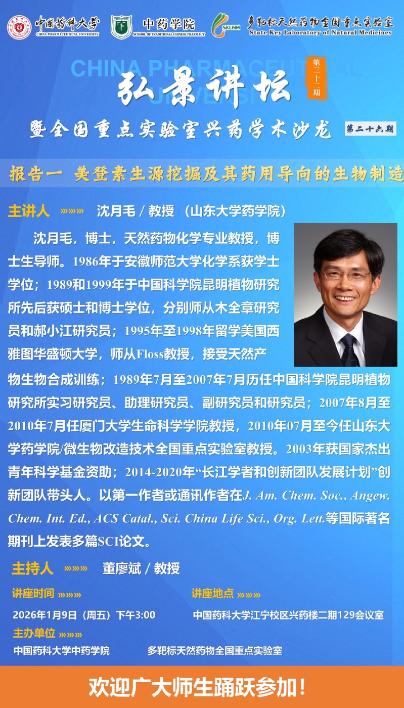 av无码 第三十二期“弘景讲坛”暨全国重点实验室兴药av无码沙龙第二十六期:山东大学沈月毛教授、中国科av无码 上海有机化学研究所唐功利研究员报告