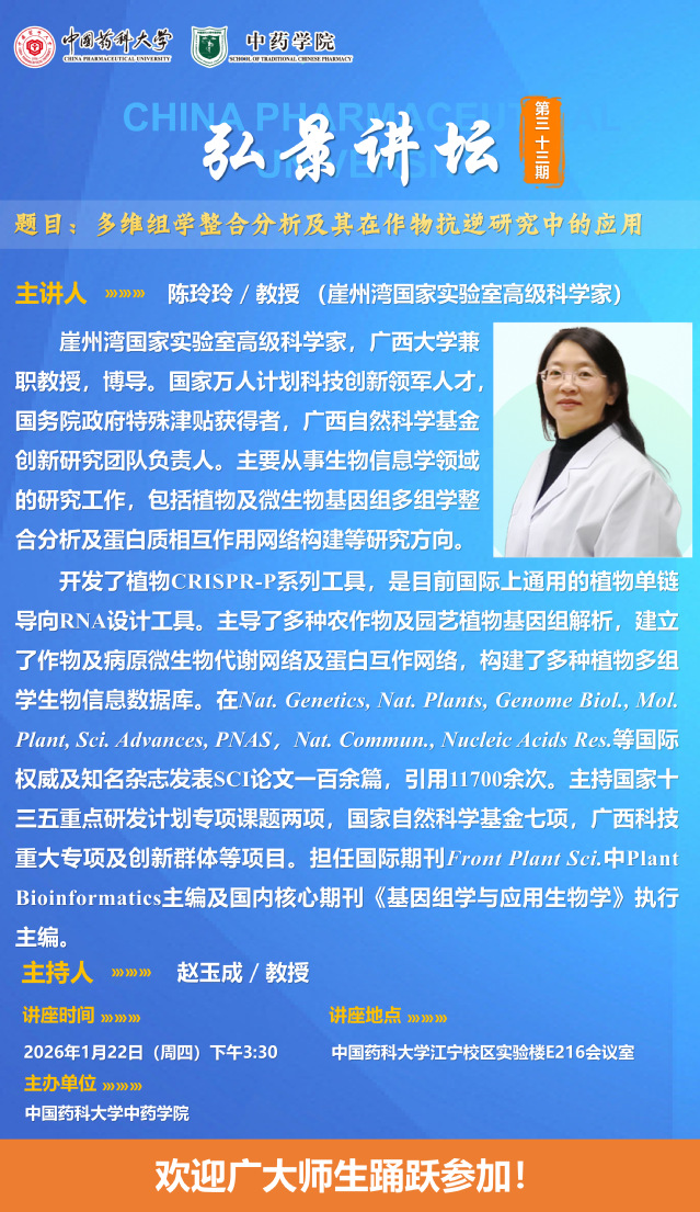 av无码 第三十三期“弘景讲坛”:崖州湾国家实验室陈玲玲教授作av无码报告